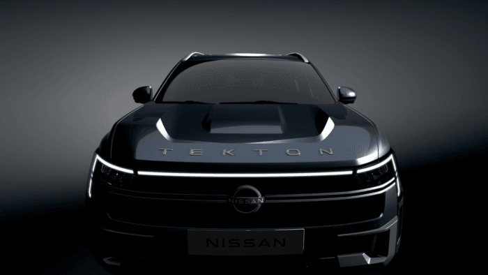 कंपनी की फ्लैगशिप SUV Nissan Patrol से Nissan Tekton का डिजाइन इंस्पायर्ड है, जो इसे एक बोल्ड और प्रीमियम लुक देता है। SUV के फ्रंट में C-टाइप सिग्नेचर DRL दिया गया है, जो हॉरिजॉन्टल हेडलैम्प्स को चारों तरफ से रैप करता है। ग्रिल पर बड़ा Nissan लोगो दिया गया है, जबकि DRL के समानांतर चलने वाली दो क्रोम स्लैट्स लाइट बार को और ज्यादा हाइलाइट करती हैं। फ्रंट बंपर पर subtle chrome accents देखने को मिलते हैं, जो SUV को एक क्लासी टच देते हैं। इसके अलावा, फ्रंट फेंडर पर दिए गए C-टाइप पैटर्न डिजाइन को और यूनिक बनाते हैं। रियर में एंगुलर टेललाइट्स हैं, जिन्हें C-टाइप लाइट बार से जोड़ा गया है, जिससे Tekton रात में भी आसानी से पहचानी जा सकेगी।