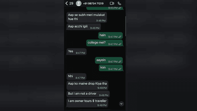 शेयर किए गए स्क्रीनशॉट्स में देखा जा सकता है, कि ड्राइवर ने पहले बहुत कैज़ुअल तरीके से “Hi” लिखा और फिर उससे दोस्ती करने का मैसेज भेजा। जब लड़की ने जवाब में पूछा, “आप कौन हैं?”, तो ड्राइवर ने माफी मांगी और बताया, कि उसने इसलिए मैसेज किया, क्योंकि वह उसे “पसंद आ गई थी।”
