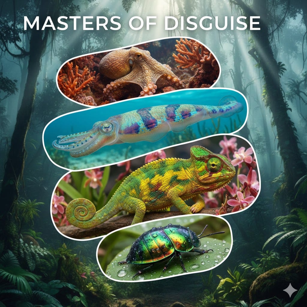 समंदर के मास्टर Cuttlefish अपनी skin instantly बदल लेता है,  Coral reefs या समुद्री तल के रंग से match कर लेते हैं।