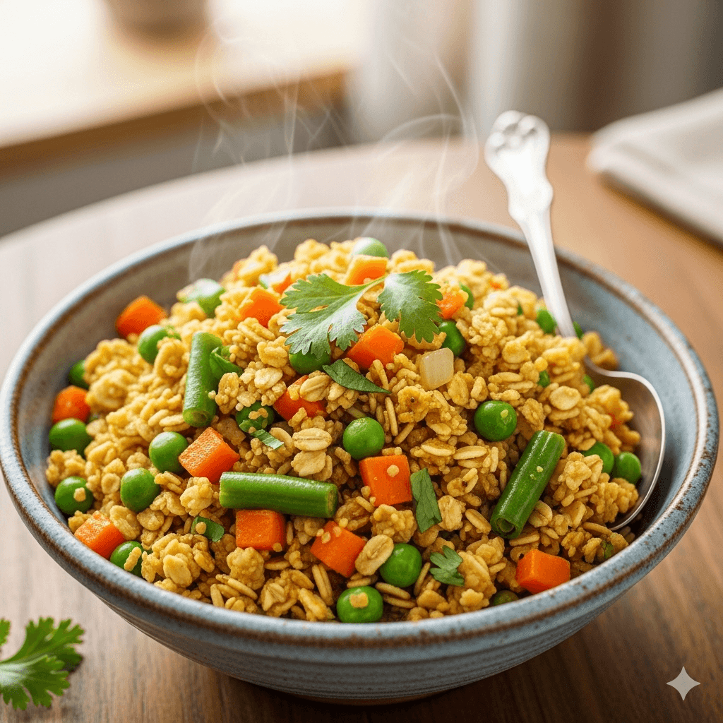 ओट्स वेजिटेबल उपमा फाइबर से भरपूर और जल्दी बनने वाला हल्का नाश्ता है।