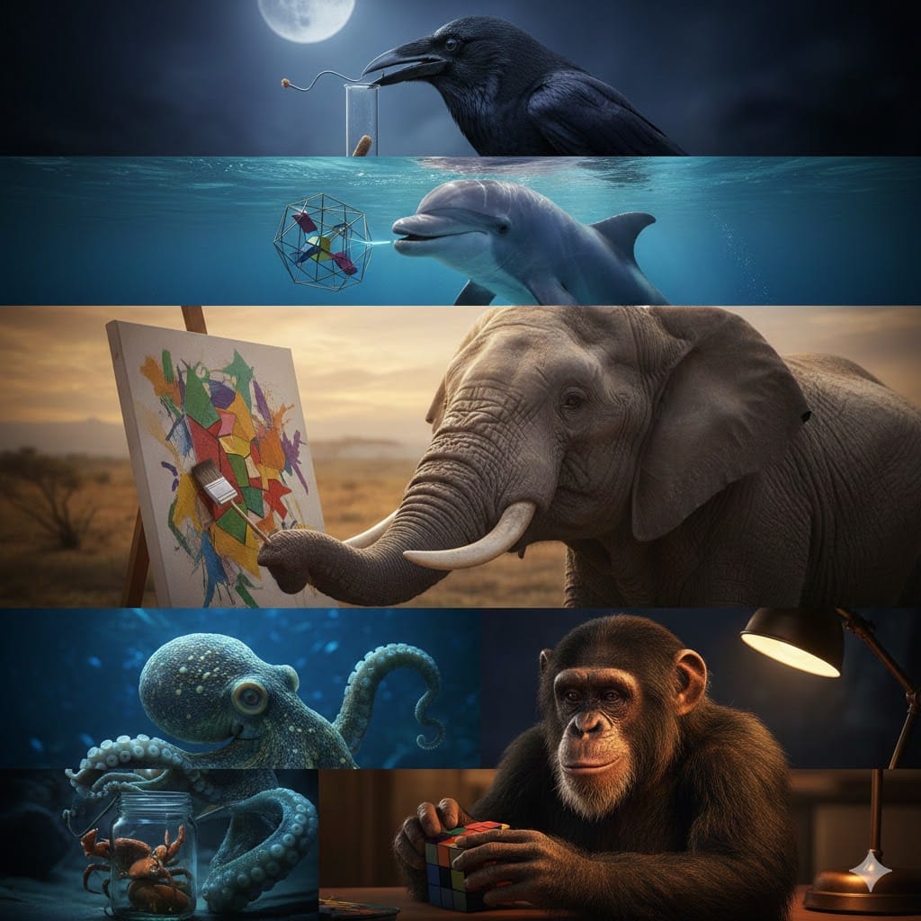 कौवे पज़ल सॉल्विंग के उस्ताद :- कौवे इंसानों के 7 साल के बच्चों जितना दिमाग इस्तेमाल करते हैं, टूल बनाना, पानी की लेवल बढ़ाना, ये सब कमाल की स्पीड से करते हैं।